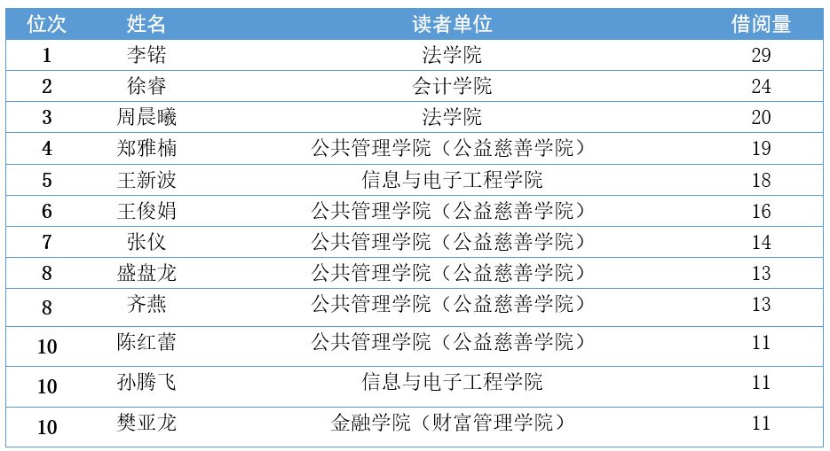 2025年法学院的李锘借阅图书29册,位居榜首。我校研究生读者全年共计借阅图书564册。