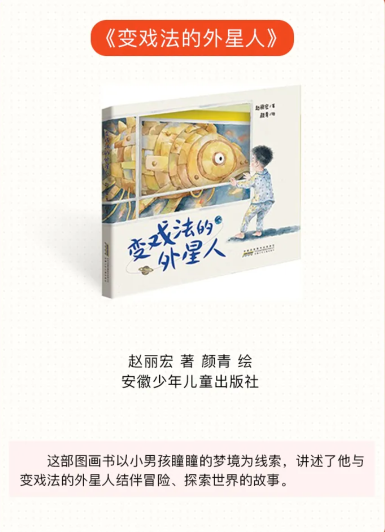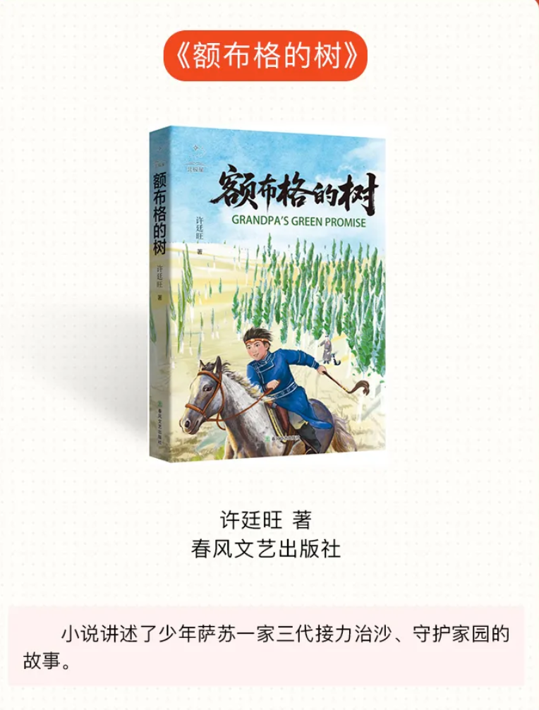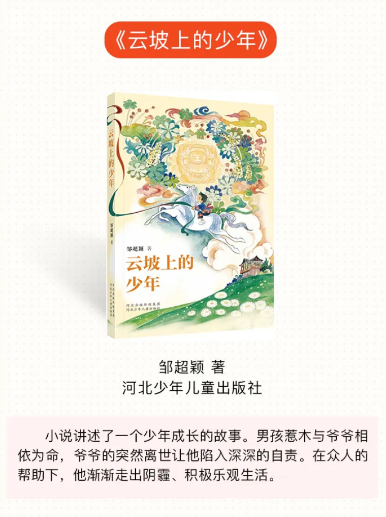 少儿类图书为:《诗书里的成长》(龙剑宇著,大象出版社)、《国之瑰宝——宋庆龄的故事》(秦文君著,中国和平出版社)、《课文背后的红色故事》(朱虹编著,人民教育出版社、三环出版社)、《慈江雨》(马三枣著,希望出版社)、《乒乓响亮》(刘海栖著,贵州人民出版社)、《紫云英合唱团》(吴洲星著,二十一世纪出版社集团)、《完美一跳》(许诺晨著,浙江少年儿童出版社)、《万花筒》(陆梅著,安徽少年儿童出版社)、《鄂伦春的熊》(格日勒其木格·黑鹤著、九儿绘,接力出版社)。